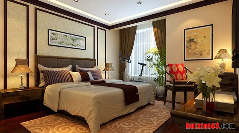 本套为古典风格装修,卧室以吊顶的图画风格相得益彰。画质细腻,搭配手法多样,让人印象深刻,空间无论在材质,线条,色彩搭配上都让居室散发着中式古典的魅力,整体给人一种自然、典雅、高贵的气度。