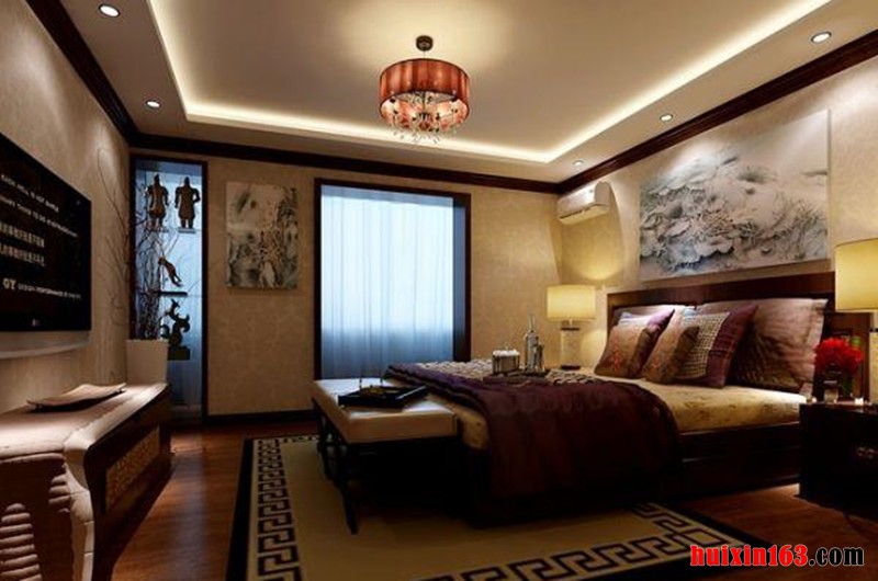 本套为古典风格装修,卧室以吊顶的图画风格相得益彰。画质细腻,搭配手法多样,让人印象深刻,空间无论在材质,线条,色彩搭配上都让居室散发着中式古典的魅力,整体给人一种自然、典雅、高贵的气度。