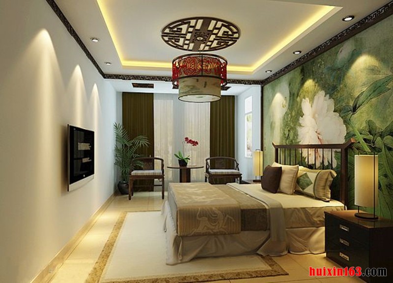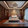 本套为古典风格装修,卧室以吊顶的图画风格相得益彰。画质细腻,搭配手法多样,让人印象深刻,空间无论在材质,线条,色彩搭配上都让居室散发着中式古典的魅力,整体给人一种自然、典雅、高贵的气度。