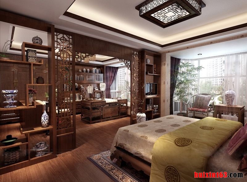 本套为古典风格装修,卧室以吊顶的图画风格相得益彰。画质细腻,搭配手法多样,让人印象深刻,空间无论在材质,线条,色彩搭配上都让居室散发着中式古典的魅力,整体给人一种自然、典雅、高贵的气度。