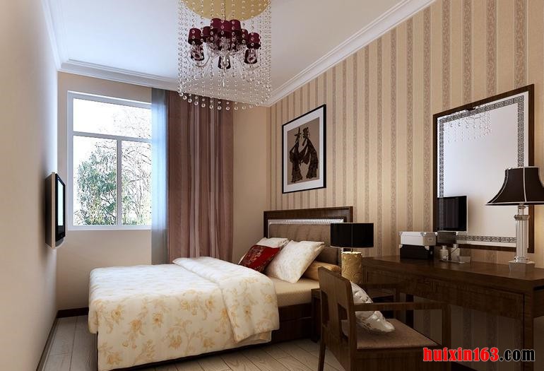 卧室采用古典风格,在低调奢华中追求生活的品味,吊顶采用石膏板吊顶,高雅,在中国现代的家居设计中,简约奢华风格通过家具的款式等元素来表现空间的变化,具有很强的品味和历史内涵。