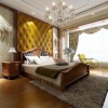 卧室采用大气古典的风格在悠闲的面积里合理的表现设计理念,通过设计手法,为业主营造舒适而不缺美感的家具环境,镂空雕花作为顶面装饰,突显了古典风格也最大限度的美化了空间,一举两得,带给一种安逸和恬静。