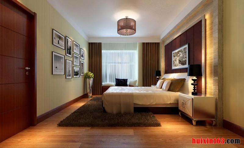 卧室石膏吊顶上的花格灯带,使空间具有延伸感,虽然墙面造型复杂但地面、顶面简单 ,整体感觉很舒服。室内多采用对称式的布局方式,格调高雅,造型简朴优美。空间方正、对称,造型朴素大方,明快色调空间求稳重。用现代材料表现古朴的文化底蕴。