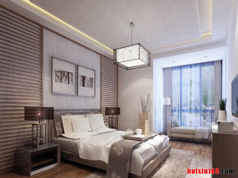 卧室在布置、线形、色调及家具、陈设的造型等方面,吸取传统装饰“形”、“神”的特征。吊顶造型稳重端庄,做工细致,装饰考究,材质的运用,色彩的搭配,创造了一种温馨、典雅的生活空间,彰显了业主的生活品质。