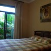 房间内的家具都是使用实木做的,在一些装饰的上面也使用了大量的木材,卧室内吊顶中间就是使用木材做的造型,吊顶的中间安装了一个造型比较华丽的吊灯,看着非常的干练有型,电视安装在一个圆的造型中,电视的下面是一个电视柜,电视柜上的浮雕是比较大气的,墙面使用的是涂料装饰,在墙面上挂了一幅山水画,让人心胸开阔。卧室床头使用的是软包,空间用简洁的线条做装饰,使屋子简单大方。