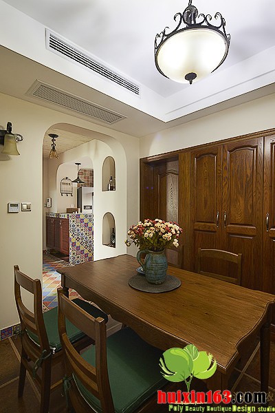 美式风格的餐厅装饰的整体效果一般可以带给人们一种清新的自然感,空间内的装饰物品都会比较具有特色,可以将传统装饰与现代装饰的特点完美的结合在一起,展现在我们面前的则是一种新奇、别致的装饰效果。