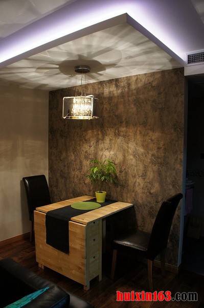 本套餐厅装饰中空间内的色调搭配比较柔和,白色以及黄色的搭配可以使整个空间都显得十分柔美、温馨,平顶式的石膏板吊顶可以将铁艺吊灯衬托的更加别致,也可以将本套餐厅设计的亮点凸显出来。