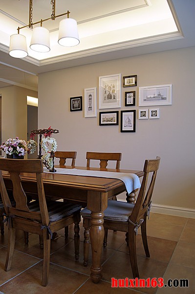 美式风格的餐厅装饰的整体效果一般可以带给人们一种清新的自然感,空间内的装饰物品都会比较具有特色,可以将传统装饰与现代装饰的特点完美的结合在一起,展现在我们面前的则是一种新奇、别致的装饰效果。