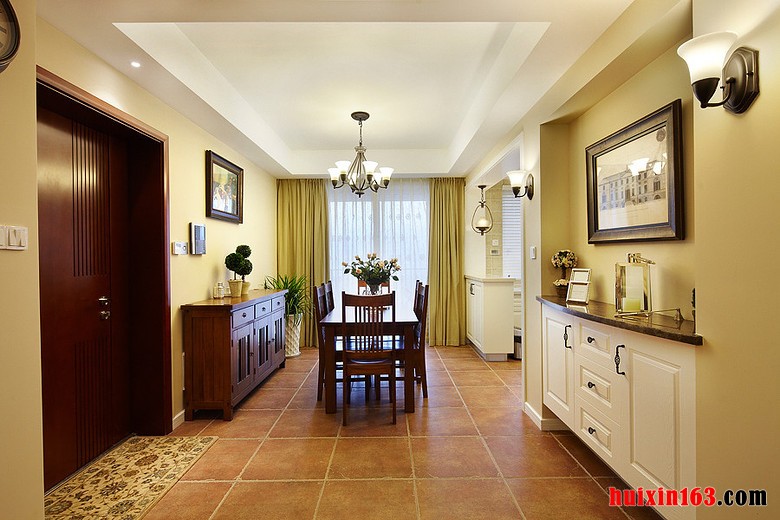 美式风格的餐厅装饰的整体效果一般可以带给人们一种清新的自然感,空间内的装饰物品都会比较具有特色,可以将传统装饰与现代装饰的特点完美的结合在一起,展现在我们面前的则是一种新奇、别致的装饰效果。