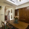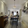 美式风格的餐厅装饰的整体效果一般可以带给人们一种清新的自然感,空间内的装饰物品都会比较具有特色,可以将传统装饰与现代装饰的特点完美的结合在一起,展现在我们面前的则是一种新奇、别致的装饰效果。 本套餐厅装饰中空间内的色调搭配比较柔和,白色以及黄色的搭配可以使整个空间都显得十分柔美、温馨,平顶式的石膏板吊顶可以将铁艺吊灯衬托的更加别致,也可以将本套餐厅设计的亮点凸显出来。 更多»推荐家装效果图