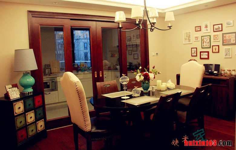 美式风格的居室装修主要是以整洁、干净为主,空间内的装饰色彩主要是以浅色调为主,整体可以营造出一种大气感,空间内的装饰会处理的十分精致,为装饰增添亮点,同时也可以凸显出美式风格的特点。 本套餐厅装饰中空间内的色彩搭配主要是以白色为主,造型简约的实木餐桌上搭配了一款白色素雅的桌布,整体的色调与款式与空间装饰的主题十分搭调,桌面上一款金属花瓶在空间内起到了一定的点缀效果,增添了空间装饰的设计感。 更多»推荐家装效果图
