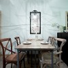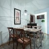 本套餐厅装饰中空间内的色彩搭配主要是以白色为主,造型简约的实木餐桌上搭配了一款白色素雅的桌布,整体的色调与款式与空间装饰的主题十分搭调,桌面上一款金属花瓶在空间内起到了一定的点缀效果,增添了空间装饰的设计感。