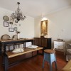 本套餐厅内的墙壁装饰使用了乳黄色的墙漆做设计,可以将整个空间都显得十分温馨,再搭配上一些简洁却又富有个性的装饰品,可以使整个设计都显得十分唯美,一款实木材质的餐桌也因此显得更加大气。