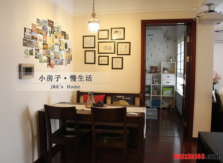 本套餐厅内的墙壁装饰使用了乳黄色的墙漆做设计,可以将整个空间都显得十分温馨,再搭配上一些简洁却又富有个性的装饰品,可以使整个设计都显得十分唯美,一款实木材质的餐桌也因此显得更加大气。
