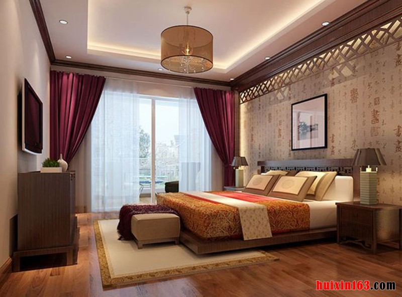 卧室采用实木装饰凹位造型吊顶,实木线勾边,古风浓郁,儒雅隽美。让原本简约大方的吊顶呈现出质朴的古感,花灯式吊灯悬挂在卧室吊顶中央,在灯光的照射下,还能给人温馨祥和之感烘托出了浓厚的古典风情。