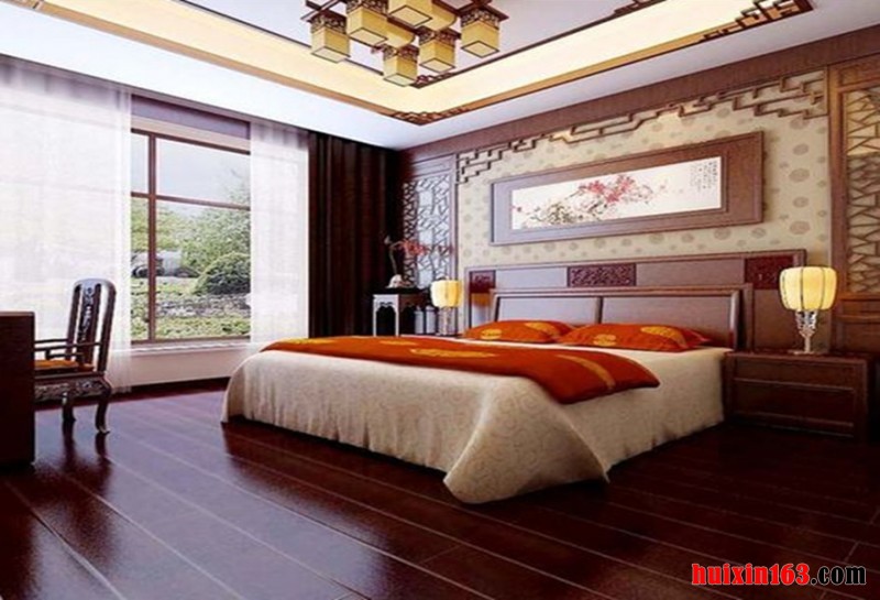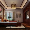 卧室采用实木装饰凹位造型吊顶,实木线勾边,古风浓郁,儒雅隽美。让原本简约大方的吊顶呈现出质朴的古感,花灯式吊灯悬挂在卧室吊顶中央,在灯光的照射下,还能给人温馨祥和之感烘托出了浓厚的古典风情。