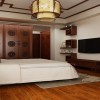 卧室采用实木装饰凹位造型吊顶,实木线勾边,古风浓郁,儒雅隽美。让原本简约大方的吊顶呈现出质朴的古感,花灯式吊灯悬挂在卧室吊顶中央,在灯光的照射下,还能给人温馨祥和之感烘托出了浓厚的古典风情。