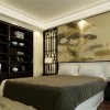 卧室采用实木装饰凹位造型吊顶,实木线勾边,古风浓郁,儒雅隽美。让原本简约大方的吊顶呈现出质朴的古感,花灯式吊灯悬挂在卧室吊顶中央,在灯光的照射下,还能给人温馨祥和之感烘托出了浓厚的古典风情。