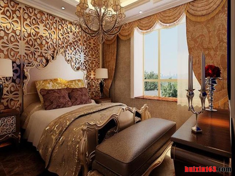 卧室吊顶采用石膏板加以镂空的木式作为吊顶,顶部的雕刻增加了室内的通透性以及美观性,古典风格将古人闲适的状态与古典的雅韵完美的表现出来,不自觉的提升了空间的文化气息。整个空间的设计将古典的富贵与奢华感表现出来,无不彰显着沉稳富贵的气息。