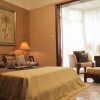 本套为古典风格装修,卧室挑高空间,独特吊顶为这间卧室增添了不少时尚感,整个空间看上去既显层次感又显得大气。造型稳重端庄,做工细致,每一件古典家具就像一首经典的老歌,在每一个流动的音符中都蕴涵着深深的韵味。
