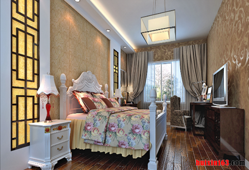 卧室的整体布局对称均衡,端正稳健,充分体现出中国传统美学精神。古典风格是在后现代建筑基础上适用于现代居住理念的中国风格,是中国传统风格文化意义在当前时代背景下的演绎,是对中国当代文化充分理解基础上的当代设计,空间让人既体会到现代设计的科技性,又体会到传统的中国韵味。