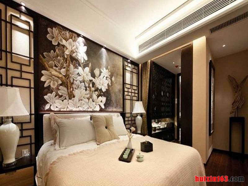 卧室的整体布局对称均衡,端正稳健,充分体现出中国传统美学精神。古典风格是在后现代建筑基础上适用于现代居住理念的中国风格,是中国传统风格文化意义在当前时代背景下的演绎,是对中国当代文化充分理解基础上的当代设计,空间让人既体会到现代设计的科技性,又体会到传统的中国韵味。
