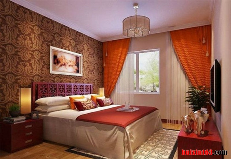 卧室的整体布局对称均衡,端正稳健,充分体现出中国传统美学精神。古典风格是在后现代建筑基础上适用于现代居住理念的中国风格,是中国传统风格文化意义在当前时代背景下的演绎,是对中国当代文化充分理解基础上的当代设计,空间让人既体会到现代设计的科技性,又体会到传统的中国韵味。
