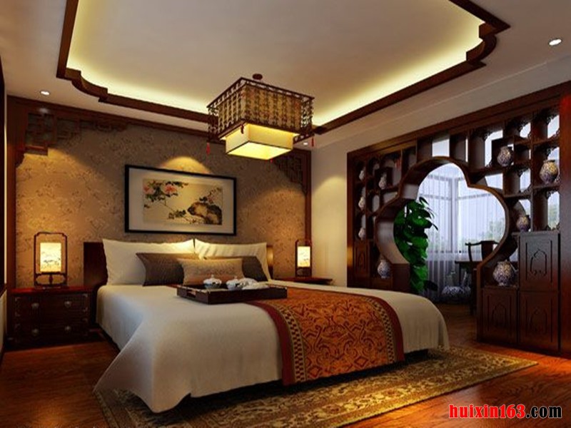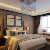 卧室的整体布局对称均衡,端正稳健,充分体现出中国传统美学精神。古典风格是在后现代建筑基础上适用于现代居住理念的中国风格,是中国传统风格文化意义在当前时代背景下的演绎,是对中国当代文化充分理解基础上的当代设计,空间让人既体会到现代设计的科技性,又体会到传统的中国韵味。