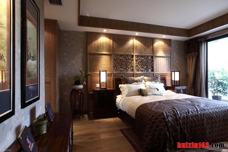 卧室的整体布局对称均衡,端正稳健,充分体现出中国传统美学精神。古典风格是在后现代建筑基础上适用于现代居住理念的中国风格,是中国传统风格文化意义在当前时代背景下的演绎,是对中国当代文化充分理解基础上的当代设计,空间让人既体会到现代设计的科技性,又体会到传统的中国韵味。