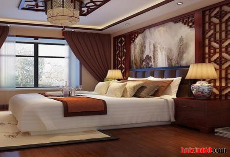 卧室简单的电视背景墙+浅色壁纸及暗红色家具。营造古典气息。空间在颜色仍然体现着古典的古朴,古典这样表现使整体空间,传统中透着现代,现代中揉着古典。古典风格的古色古香与现代风格的简单素雅自然衔接,使生活的实用性和对传统文化的追求同时得到了满足。