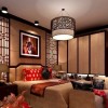 卧室简单的电视背景墙+浅色壁纸及暗红色家具。营造古典气息。空间在颜色仍然体现着古典的古朴,古典这样表现使整体空间,传统中透着现代,现代中揉着古典。古典风格的古色古香与现代风格的简单素雅自然衔接,使生活的实用性和对传统文化的追求同时得到了满足。
