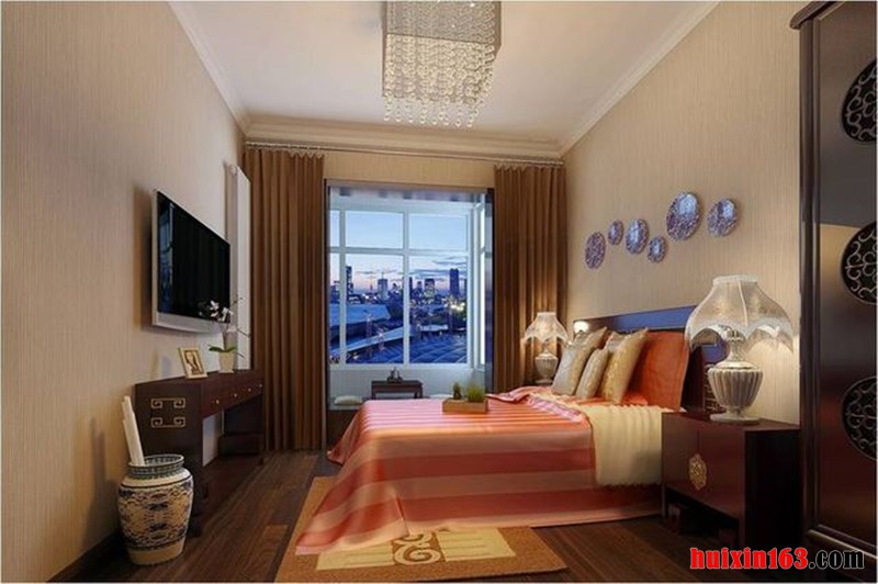 卧室的装饰整体采用了实木贯穿的装修手法,白色的石膏板吊顶设计搭配上实木的边框让空间的立体感倍增,实木的整体复古雕刻的家具搭配瞬间加深了装修品味和舒适性的存在,整体的打造突出了古典装修特点。