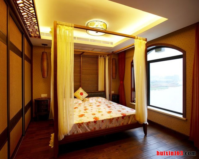 卧室的装饰整体采用了实木贯穿的装修手法,白色的石膏板吊顶设计搭配上实木的边框让空间的立体感倍增,实木的整体复古雕刻的家具搭配瞬间加深了装修品味和舒适性的存在,整体的打造突出了古典装修特点。