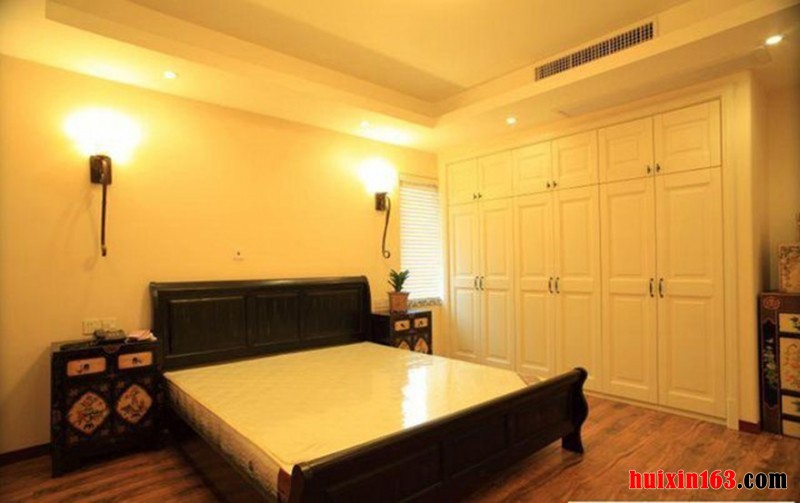 卧室的装饰整体采用了实木贯穿的装修手法,白色的石膏板吊顶设计搭配上实木的边框让空间的立体感倍增,实木的整体复古雕刻的家具搭配瞬间加深了装修品味和舒适性的存在,整体的打造突出了古典装修特点。