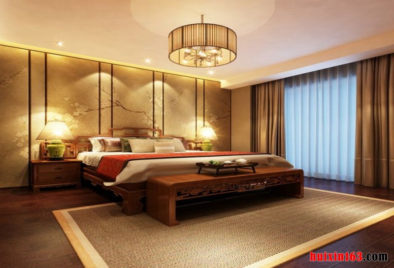 卧室的装饰整体采用了实木贯穿的装修手法,白色的石膏板吊顶设计搭配上实木的边框让空间的立体感倍增,实木的整体复古雕刻的家具搭配瞬间加深了装修品味和舒适性的存在,整体的打造突出了古典装修特点。