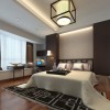 卧室的整体装饰比较简洁和大气,白色的石膏板吊顶和石膏线的打造让顶面装饰更具有延伸空间的作用,吊灯的使用为顶面装饰增加了一份装饰色彩,实木地板的使用加深了空间的舒适性,展现出主人的生活品味。地面采用实木质感的交叉双拼地板增加空间的高度感。