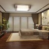 卧室的设计雍容奢华,整体的使用强调了一致性的装修风格,白色的吊顶加以大气的吊灯装饰增加了卧室的和谐气氛和温馨环境,古典风格的打造采用了现代化的装修材料有效的表现出中国传统的元素。