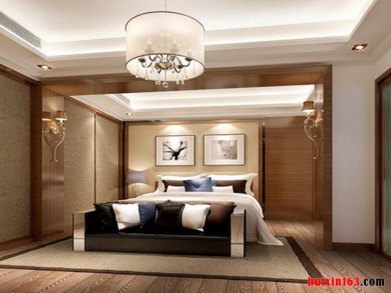 卧室的设计雍容奢华,整体的使用强调了一致性的装修风格,白色的吊顶加以大气的吊灯装饰增加了卧室的和谐气氛和温馨环境,古典风格的打造采用了现代化的装修材料有效的表现出中国传统的元素。