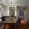 本套餐厅装饰中空间内的色调搭配可以带给人们一种华丽的感觉,平顶式的石膏板吊顶则彰显了一种大气之势,一盏金属材质的吊灯更是彰显出了一种艺术气息,更是提升了装饰的档次。