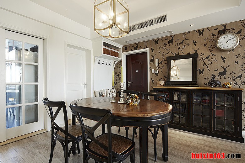 美式风格的居室装修主要可以打造出一种休闲式的浪漫,由于美国的文化是一个多元素的集结的产物,所以它的居室装修内一定会带给人们很多不一样的感受,无论是空间色彩搭配还是居室内的装饰物品摆放都会带给人们一种强烈的视觉冲击。 本套餐厅装饰中空间内的色调搭配可以带给人们一种华丽的感觉,平顶式的石膏板吊顶则彰显了一种大气之势,一盏金属材质的吊灯更是彰显出了一种艺术气息,更是提升了装饰的档次。 更多»推荐家装效果图