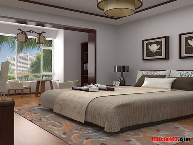 卧室家具的设计摒弃了现代风格完全简约的呆板与单调,在空间设计、材料、色彩运用和家具装饰品陈设上,使之融入空间,古色古香、简约时尚,没有喧嚣与繁冗,一派宁静悠远。