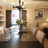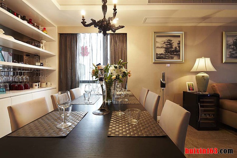美式风格的居室装修中并不会像欧式风格那样带有奢华的色彩,但并不缺乏贵气的展现,美式风格的家具款式都是比较大气的,精致的设计更是可以将华丽彰显的淋漓尽致,从而凸显出来的则是另一种美感。 本套餐厅装饰的整体效果彰显出的是以中大气的色彩,空间内的主色调的是以白色为主,一款黑色的长条餐桌搭配了白色的布艺座椅,更加凸显了质感,同时也使空间装饰显得更加具有时尚气息。 更多»推荐家装效果图