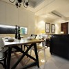 本套餐厅装饰的整体效果彰显出的是以中大气的色彩,空间内的主色调的是以白色为主,一款黑色的长条餐桌搭配了白色的布艺座椅,更加凸显了质感,同时也使空间装饰显得更加具有时尚气息。