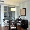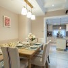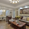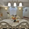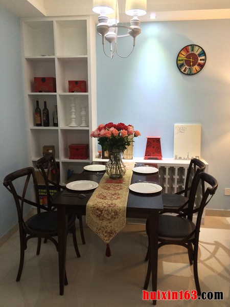 美式风格的大气主要是展现在空间内部的布局上,空间内的整体布局以及家具的摆放可以带给人们一种通透感,并不会有狭小空间的压迫,整体可以带给人们一种十分舒适的感觉。 本套餐厅装饰中色调的搭配十分柔和,一款黑色的餐桌搭配了黄色带有淡淡红色花纹的布艺桌旗,整体的色调搭配以及花样图案带给人们的则是一种唯美的感受,中间艺术鲜花花瓶更是起到了点缀的效果。 更多»推荐家装效果图