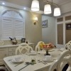 本套餐厅装饰中色调的搭配十分柔和,一款黑色的餐桌搭配了黄色带有淡淡红色花纹的布艺桌旗,整体的色调搭配以及花样图案带给人们的则是一种唯美的感受,中间艺术鲜花花瓶更是起到了点缀的效果。