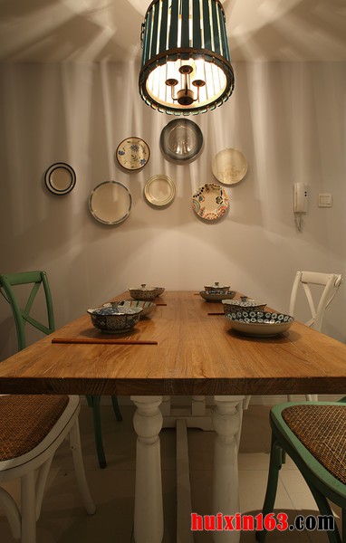 本套餐厅装饰中空间内的主色调是以白色为主,石膏板吊顶则是平顶式的设计,中间一款金属材质的吊灯更是散发着一种贵金属的气息,简约的灯罩设计却并不缺乏时尚感,整体的装饰搭配则可以散发出一种大气。