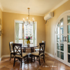 本套餐厅装饰的色调主要是以白色为主,而且还靠着一扇窗,可以使整个空间都显得十分的通透、明亮,石膏板吊顶的设计十分简洁,同时也具有了一定的设计感,中间一款黑色铁艺吊灯也因此显得更加唯美、别致。