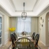 本套餐厅装饰中空间内的整体装饰色调比较柔和,一款实木餐桌上铺设了一款色彩素雅的布艺桌旗,并摆放了一款白色的瓷质花瓶,搭配上新鲜的花束更是为空间增添了一丝自然气息。