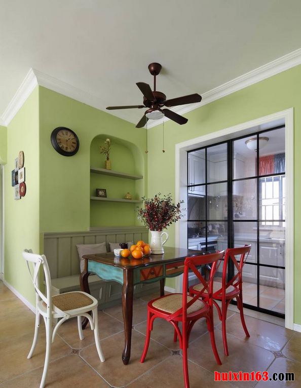 美式乡村风格主要倡导的就是“回归自然”,它是美国西部乡村的生活方式演变,至今已经成为了一种流行的居室装修风格,居室内的装饰材料主要是以天然石材以及木材为主,可以为空间营造出一种天然气息。
