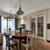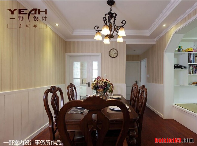 美式风格的空间装饰在色彩的搭配上主要是以自然、怀旧为主,空间内的装饰色彩多以土褐色、绿色以及暖黄色为主,空间内的线条搭配是十分简洁但并不缺乏个性,整体的装饰效果可以带给人们一定的亲切感。 本套餐厅装饰中,空间内的色彩搭配比较柔和,墙壁上粘贴了淡黄色带有条形图案的壁纸,整体的装饰效果十分流畅,虽没有华丽的装饰也没有惊艳的色彩搭配,但整体的装饰效果却并不缺乏设计感。 更多»推荐家装效果图